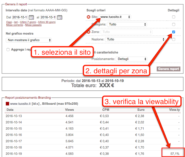 Invitiamo tutti i publishers a visionare i propri report e ad attenzionare la nuova colonna View.ty per verificare il range all'interno del quale sono state inserite le proprie zone, migliorandone la viewability qualora questa fosse troppo bassa.