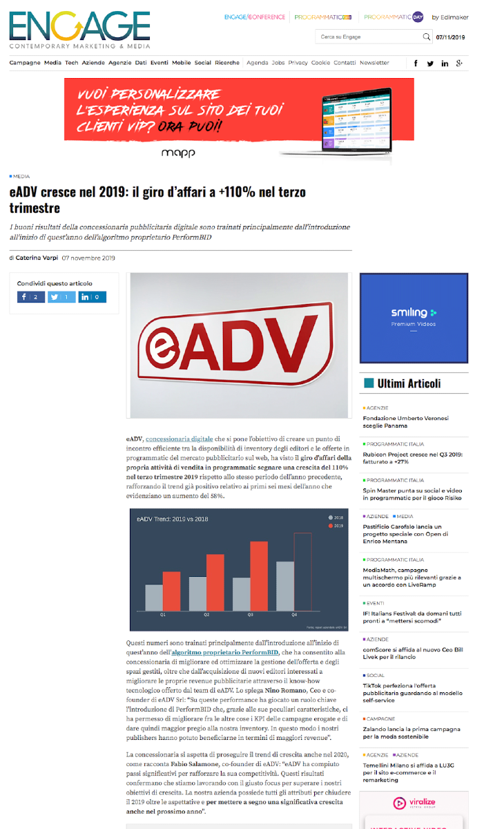 eADV cresce nel 2019: il giro d’affari a +110% nel terzo trimestre