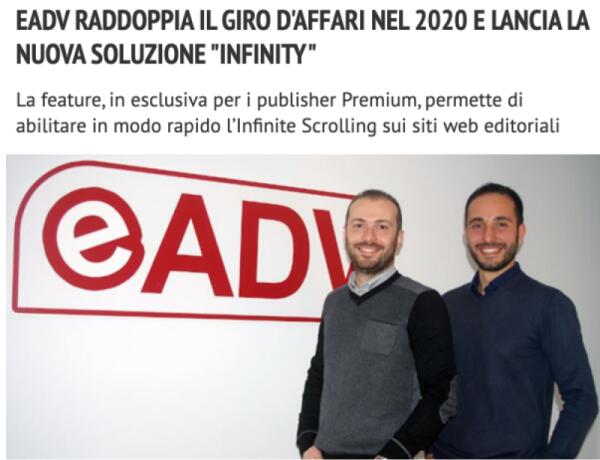 eADV raddoppia il giro d'affari nel 2020 e lancia la nuova soluzione "infinity"